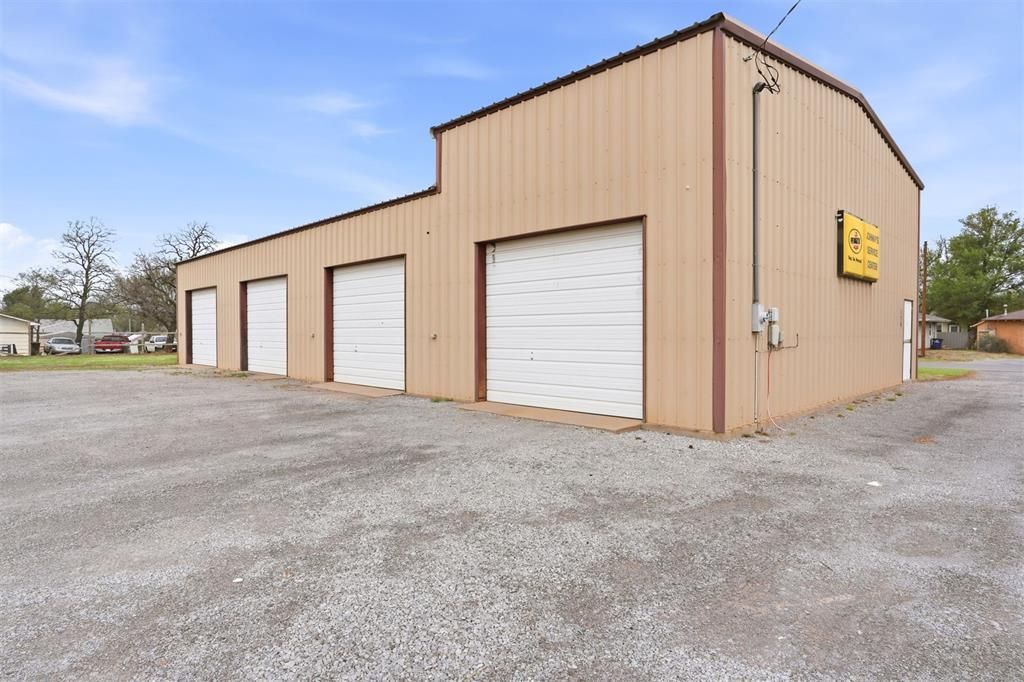 Prime Commercial Shop Opportunity in Carnegie, OKDon't miss this exceptional commercial property offering a spacious, well-equipped shop designed for productivity and versatility. This large building features four oversized bays, each with electric overhead doors, making it ideal for a variety of operations-from automotive and mechanical work. Building measures 40'x80'.The north side of the building includes a 19' x 13.5' office space complete with a private bathroom and mini-split unit, providing a comfortable and efficient workspace separate from the shop floor.The shop is fully insulated and includes concrete floors throughout, floor drains in every bay, and 220-volt plugs for heavy-duty equipment. A 4-post lift (installed in 2019) is already in place, adding immediate value for automotive or service-based businesses. The building is also equipped with air compressor and air compressor lines throughout, ensuring seamless workflow across all bays.Additional highlights include:Walk-through doors in each bay for easy accessOne bay has a drive through option4 bays on the South side and 1 overhead door on the NFrost-free hydrantPlenty of storage spaceStorage space / loft above the office Underground storm shelter located outside for added safetyThis property is a rare find in Carnegie-combining durability, convenience, and efficiency in one turnkey commercial package. Whether you're expanding your business or investing in a high-utility property, this shop is ready to go to work for you.Call for your private showing today!