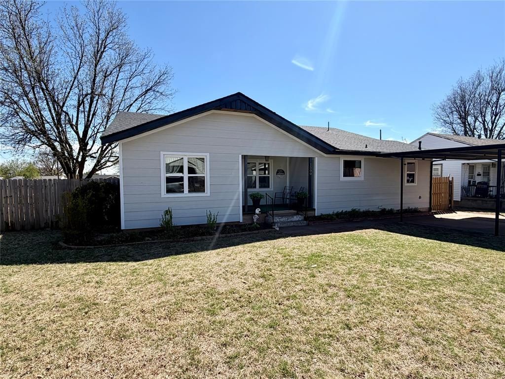 Welcome home to this 3-bedroom, 2 bathroom property that combines comfort, space, and peace of mind.This home features a spacious layout with large bedrooms, providing plenty of room for relaxation and privacy. The oversized kitchen is perfect for cooking and gathering, complete with a generous pantry for all your storage needs. Just off the kitchen, you'll find a large laundry room with more storage, and a convenient sink, making everyday chores a breeze.Enjoy some major updates throughout, including all new windows and new siding offering both style and efficiency. Step outside to a great fenced-in backyard - ideal for pets, kids, or entertaining guests.For added safety and security, the property also includes a storm shelter, giving you a peace of mind during severe weather.This move-in home has everything you need - space, updates, and value - all in one!