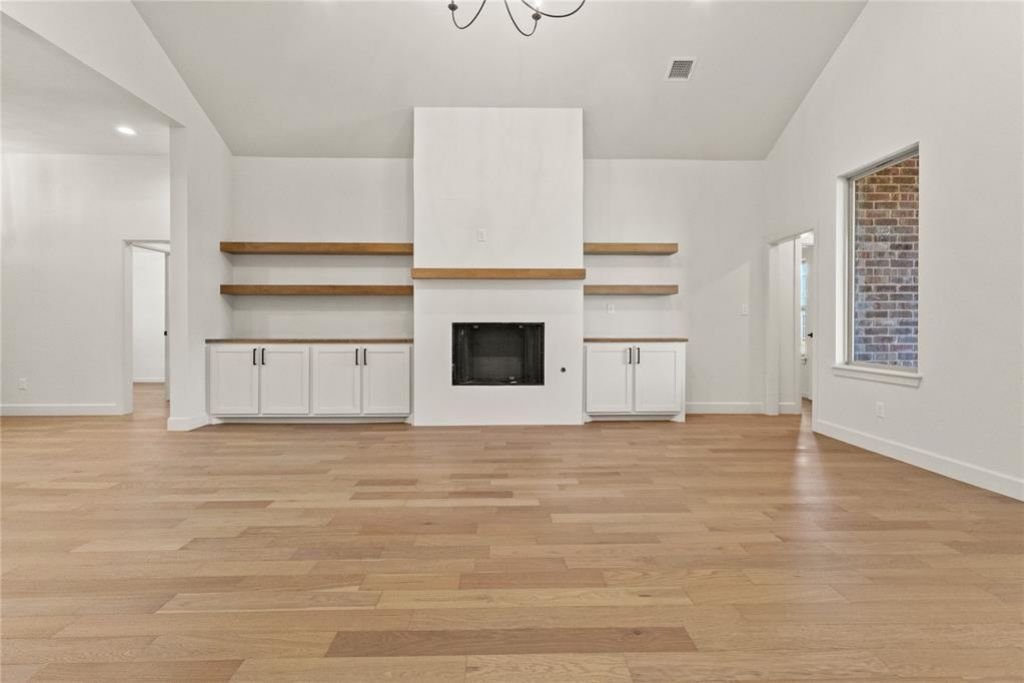 This stylish, newly constructed home offers everything you've been looking for. Designed with modern farmhouse flair, this 4-bedroom, 3-bath home with a dedicated study showcases top-of-the-line finishes throughout. The expansive open floor plan features Alpine Oak hardwood flooring that flows seamlessly through the main living areas, complemented by porcelain tile in the bathrooms and laundry room. At the heart of the home, the chef's kitchen is equipped with commercial-grade stainless steel appliances, including a gas range, custom cabinetry with under cabinet lighting, and stunning Lux Aurum and Bianco Aspen 3CM quartz countertops-both beautiful and easy to maintain. The oversized living room boasts a soaring cathedral ceiling and a striking gas log fireplace with a floor-to-ceiling decorative tile surround, framed by custom built-ins and floating shelves. Designer lighting, fans, and plumbing fixtures add a refined touch throughout the home. The private owner's suite is thoughtfully separated from the secondary bedrooms and features a raised ceiling and a spa-like bath complete with a freestanding soaking tub, walk-in porcelain tile shower, extra-long vanity with double under mount sinks, and framed mirrors. The expansive walk-in closet provides exceptional storage and functionality. A secondary guest bedroom is privately situated near a full bath, making it ideal for an in-law or nanny suite. Two additional bedrooms are positioned on the opposite side of the home and share a well-designed bath with separate vanities and a common tub/shower area. Walk-in closets and abundant storage are found throughout. Step outside to an oversized covered patio-perfect for entertaining and backyard grilling. The exterior is complete with a fully sodded lawn, sprinkler system, front landscaping, and a wood privacy fence. A 1-year builder warranty is included for added peace of mind.