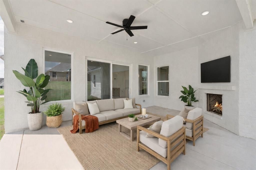 Inquire about builder-offered incentives that may be applied toward closing costs or design selections. Striking curb appeal begins with crisp white painted brick and sets the stage for this thoughtfully designed new construction by Iron Bison Homes, located in Ridge Creek, one of East Edmond's premier gated communities featuring a neighborhood pool and serene ponds. Offering 2,806 square feet of well-planned interior living space plus 288 square feet of covered outdoor living, this home is designed for both everyday comfort and elevated entertaining. The patio's masonry fireplace extends outdoor enjoyment through every season. Inside, Iron Bison's signature craftsmanship is immediately evident. Pella windows and doors with custom casement trim, 10-foot ceilings, vaulted accents, and soft architectural arches create an airy yet refined atmosphere throughout. The open living and dining spaces flow seamlessly into the chef's kitchen-beautifully appointed with custom maple cabinetry, full-extension drawers, a designer backsplash, and a walk-in butler's pantry that blends form with function. The primary suite on the main level serves as a true retreat, featuring a spa-inspired bath with soaking tub, dual vanities, walk-in shower, and a pass-through laundry room conveniently connected to the primary closet. A flexible downstairs bonus room offers endless possibilities for a playroom, home office, or second living space. Upstairs, you'll find three spacious bedrooms and two full bathrooms, each thoughtfully designed to maximize comfort, storage, and style. Every detail reflects Iron Bison's commitment to quality, intention, and timeless design. Experience the craftsmanship that sets this home apart in one of East Edmond's most desirable neighborhoods.